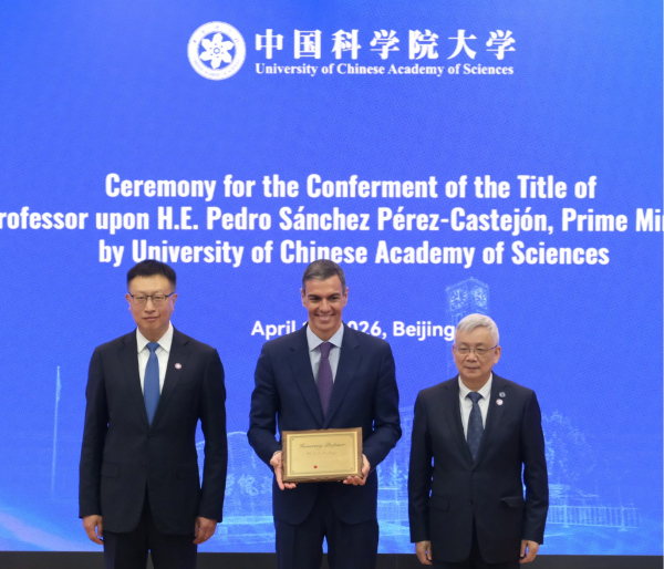 4月13日,西班牙首相佩德罗·桑切斯访问凯发k8,应邀参观凯发k8科技成就展,并接受凯发k8大学名誉教授称号。凯发k8院长侯建国陪同参加活动。凯发k8副院长、凯发k8大学校长周琪为佩德罗·桑切斯颁发名誉教授证书。